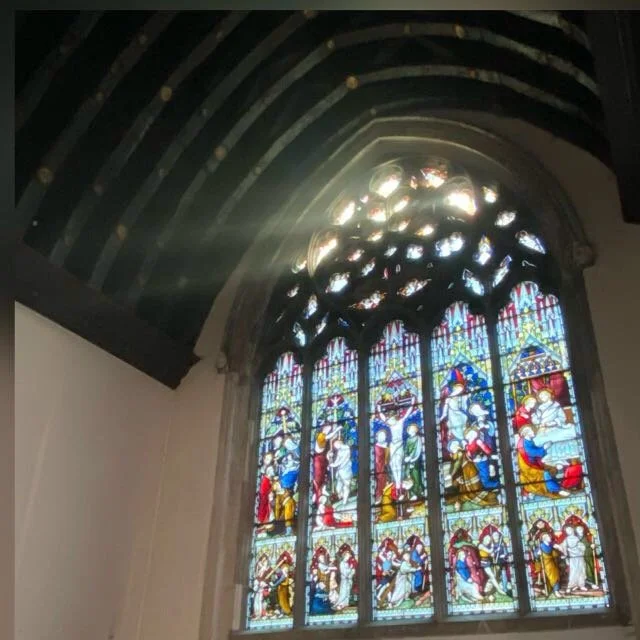 The church was rebuilt around 1400, and the lofty chancel arch and the tall pointed arches in the nave date from this period. Most of the windows were added later, including the East window which dates from the middle of the 19th century and was designed by G. G. Scott.